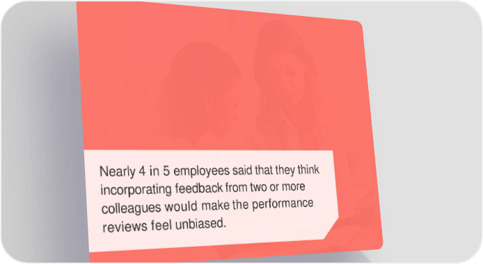 Nearly4 in 5 employees said that they think incorporating feedbackfromtwo or more colleagues would makethe performance reviews feel unbiased.